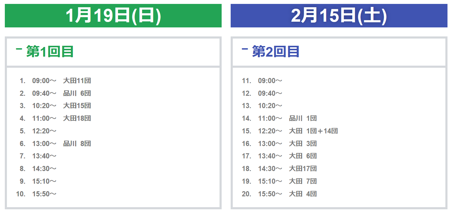 1月19日と2月15日の2回に分けて実施されます。