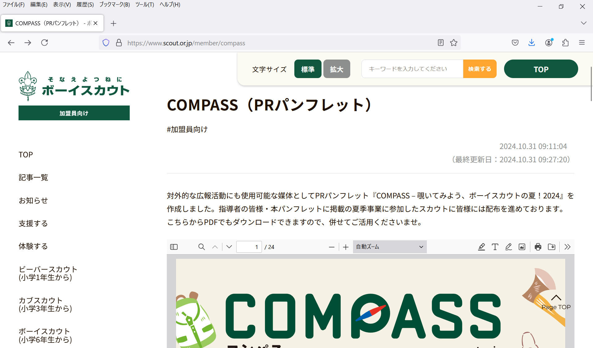 ボーイスカウト日本連盟からCOMPASS(PRパンフレット)が発行されました。
