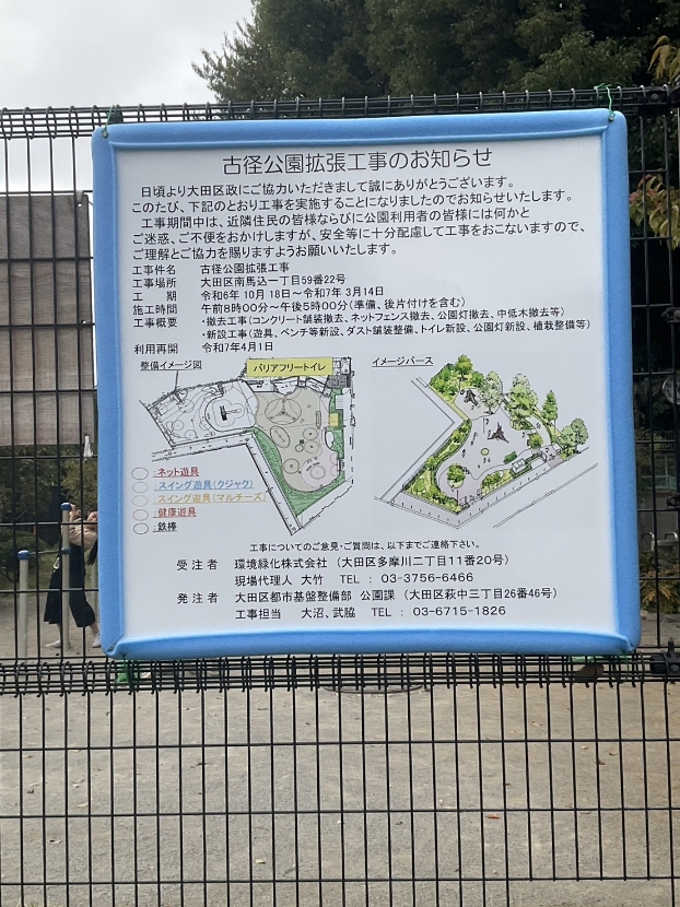 大田15団の活動で使用している古径公園が拡張工事に入ることがわかりました。